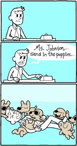 අන්තර්ගත විස්තරය: a cartoon shows a man sitting at a desk talking to ms. johnson