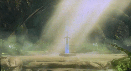 Opis obsahu: a video game scene with a sword in the middle of a cave