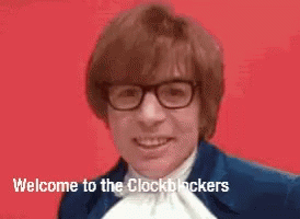 Opis obsahu: a man wearing glasses is screaming with the words welcome to the clockblockers yea baby yea