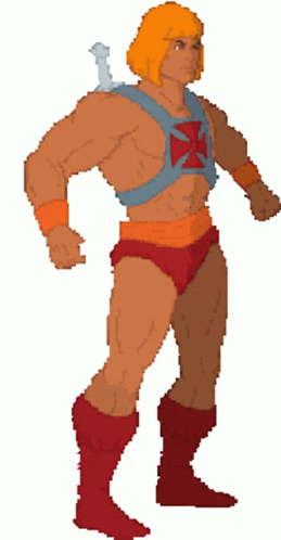 Opis obsahu: a pixel art drawing of he man from the masters of the universe