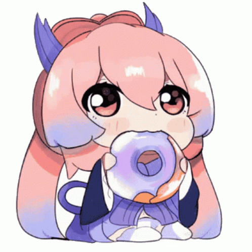 Opis obsahu: a cartoon girl with horns is eating a donut