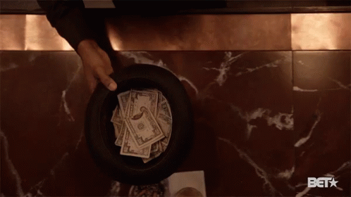 a man is playing a guitar in a field and says `` throw a little money in the '' .