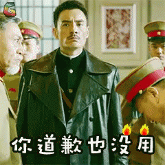 Opis vsebine: a man in a leather coat stands in front of a group of men in military uniforms