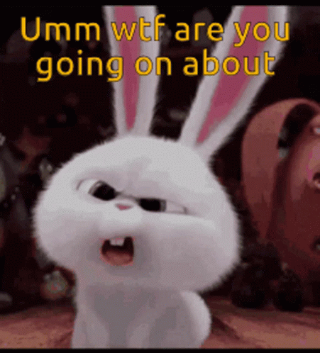 Përshkrimi i përmbajtjes: a cartoon rabbit with the words umm wtf are you going on about
