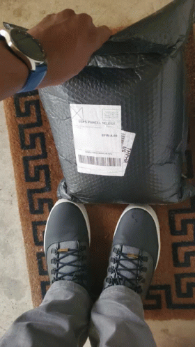 Përshkrimi i përmbajtjes: a person standing in front of a package that says usps parcel select