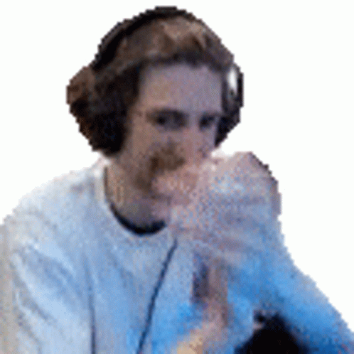 Përshkrimi i përmbajtjes: a man wearing headphones and a white sweater is sitting in front of a microphone .
