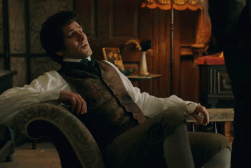 Përshkrimi i përmbajtjes: a man in a vest and tie sits on a chair