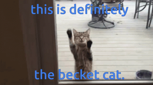 Përshkrimi i përmbajtjes: a cat standing on its hind legs with the words " this is definitely the becket cat " below it
