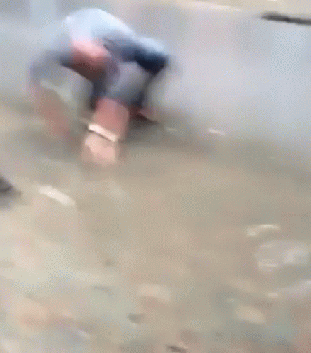 Përshkrimi i përmbajtjes: a man is crawling on the ground in a flooded area .