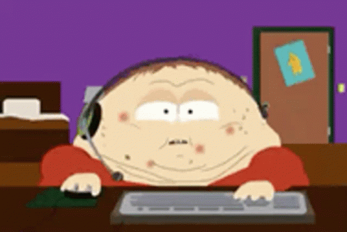 Përshkrimi i përmbajtjes: a cartoon character wearing headphones is sitting at a desk with a keyboard and mouse