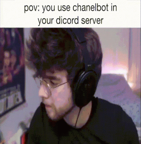 Përshkrimi i përmbajtjes: a man wearing headphones has a caption that says you use chanelbot in your discord server