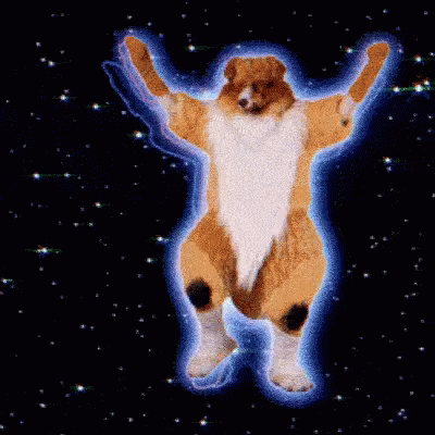 Përshkrimi i përmbajtjes: a picture of a dog in space with its arms up