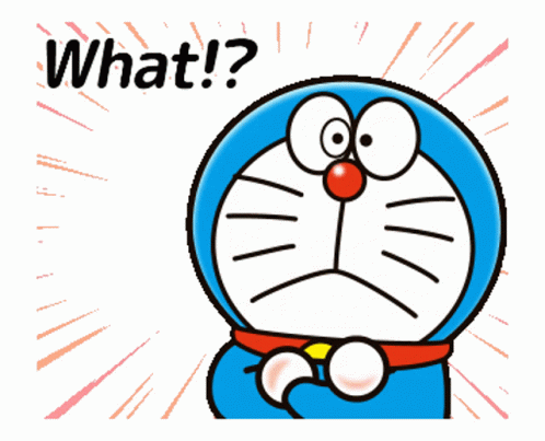 Përshkrimi i përmbajtjes: a cartoon of doraemon with the words " what ! " above him