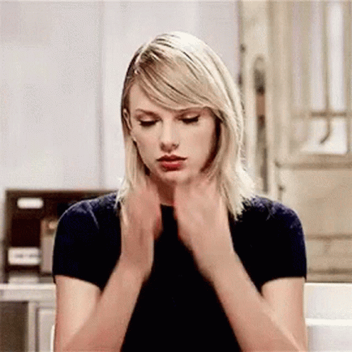 Përshkrimi i përmbajtjes: taylor swift is sitting at a table with her hands on her face and making a funny face .