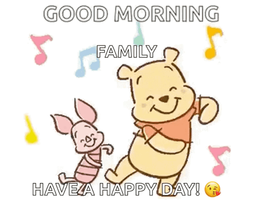 - Përshkrimi i përmbajtjes: a cartoon of winnie the pooh and piglet dancing with the words good morning family have a happy day .