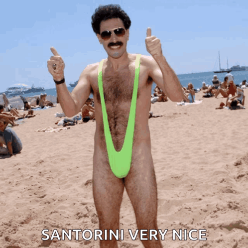Përshkrimi i përmbajtjes: a man in a green slingshot giving a thumbs up