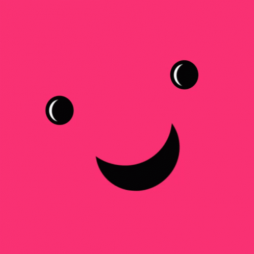 Përshkrimi i përmbajtjes: a pink background with a black smiley face and two black eyes