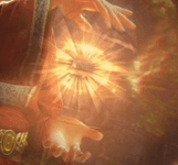 Përshkrimi i përmbajtjes: a person is holding a glowing object in their hands in a dark room .