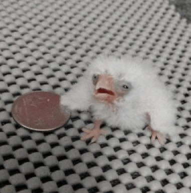 Përshkrimi i përmbajtjes: a baby bird is sitting next to a small coin on a checkered blanket .