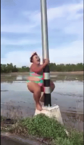 Përshkrimi i përmbajtjes: a woman in a bikini is climbing a pole