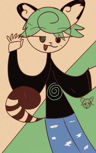 Përshkrimi i përmbajtjes: a drawing of a cartoon character with green hair and a swirl on his shirt