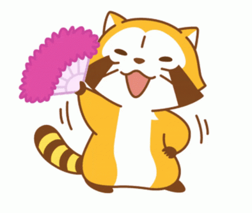 Përshkrimi i përmbajtjes: a cartoon drawing of a raccoon holding a pink fan