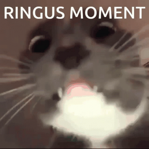 Përshkrimi i përmbajtjes: a close up of a cat 's face with the words " ringus moment " below it