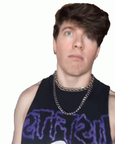 Përshkrimi i përmbajtjes: a young man wearing a necklace and a tank top that says witch on it