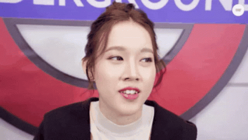 Përshkrimi i përmbajtjes: a woman is making a funny face in front of a sign that says " the "