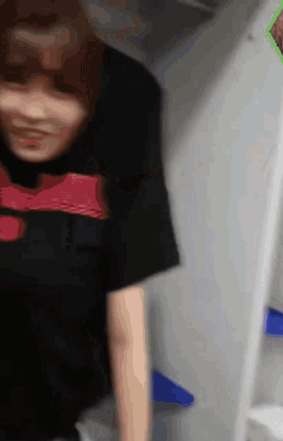 Opis sadržaja: a blurry picture of a person wearing a black shirt with a red heart on it