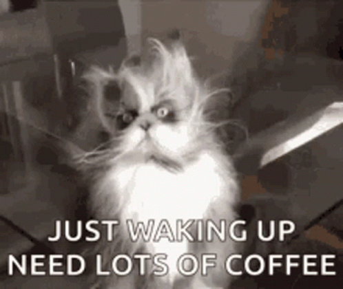 Opis sadržaja: a cat with a mustache is waking up and looking at the camera .