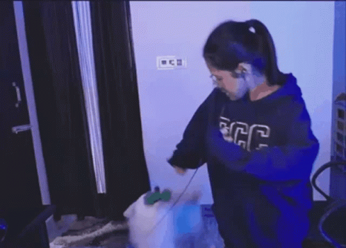 Opis sadržaja: a girl wearing a scg sweatshirt is dancing in a room