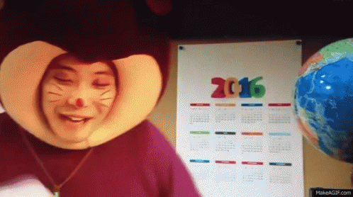 Opis sadržaja: a person in a cat costume is standing in front of a calendar that says 2016