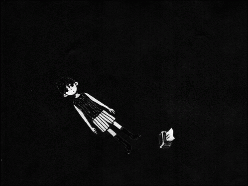 Opis sadržaja: a black and white drawing of a girl in a striped dress
