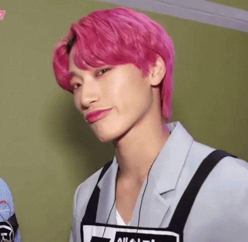 Opis sadržaja: a young man with pink hair is wearing a blue jacket