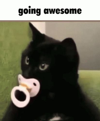 Opis sadržaja: a black cat is holding a pacifier in its mouth and says going awesome
