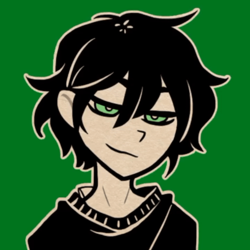 Opis sadržaja: a drawing of a boy with green eyes and black hair