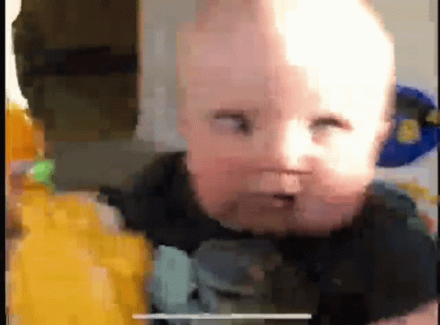 Opis sadržaja: a pixelated image of a baby looking at the camera with a blurred background