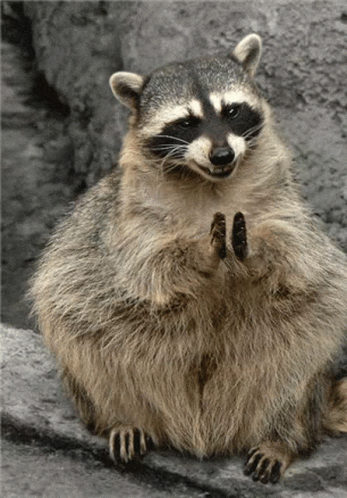 Opis sadržaja: a raccoon sitting on a rock with its paws on its belly