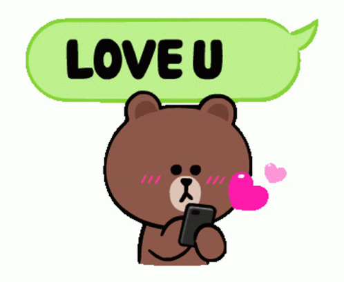 Opis sadržaja: a cartoon bear is holding a cell phone and a speech bubble says love u
