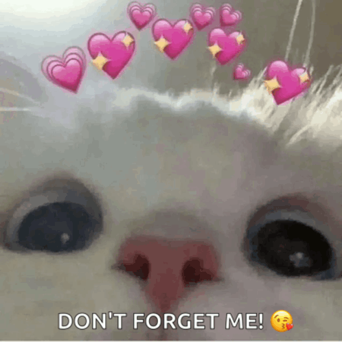 Opis sadržaja: a close up of a cat 's face with pink hearts and the words " don 't forget me " below it