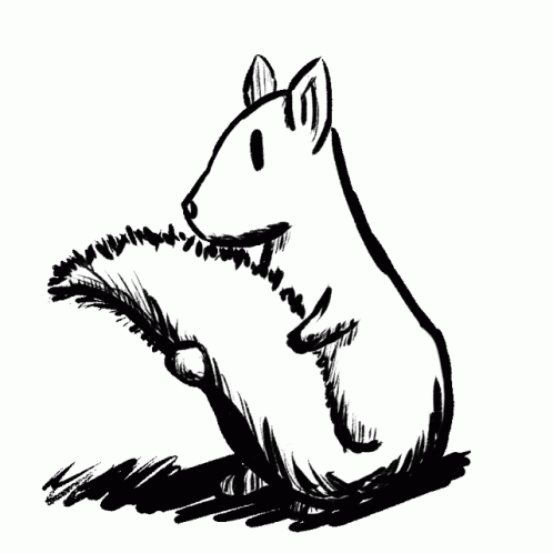 Opis sadržaja: a black and white drawing of a squirrel with a long tail