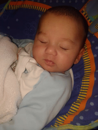 Opis sadržaja: a baby is sleeping on a colorful blanket