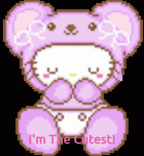 Opis sadržaja: a pixel art of a teddy bear with the words i 'm the cutest written below it