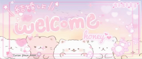 Opis sadržaja: a banner that says welcome honey with cats and teddy bears
