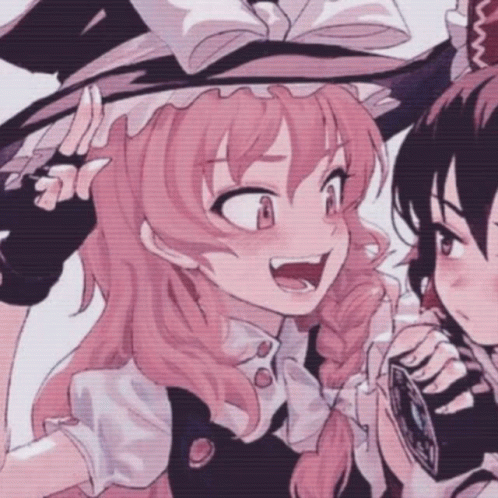 Opis sadržaja: a couple of anime girls are standing next to each other and one is wearing a hat .