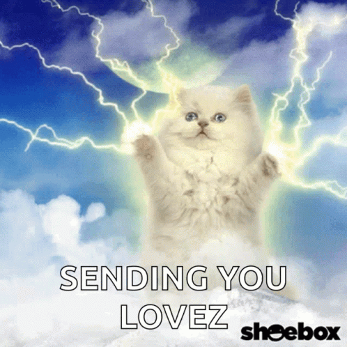 Opis sadržaja: a picture of a cat with lightning and the words sending you lovez on the bottom