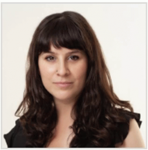Opis sadržaja: a woman with long dark hair and bangs is wearing a black top