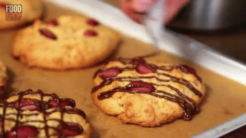 Opis sadržaja: a tray of cookies with chocolate drizzle and the words food tube on the bottom
