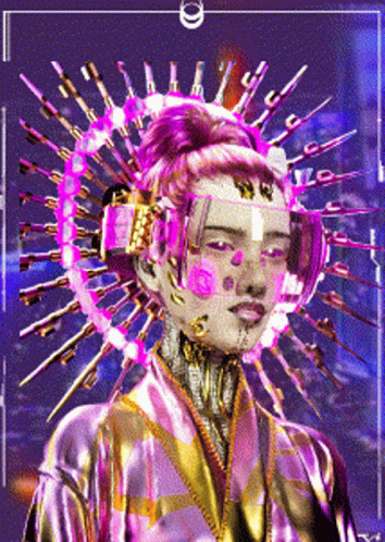 Opis sadržaja: a painting of a woman wearing headphones and a crown of spikes